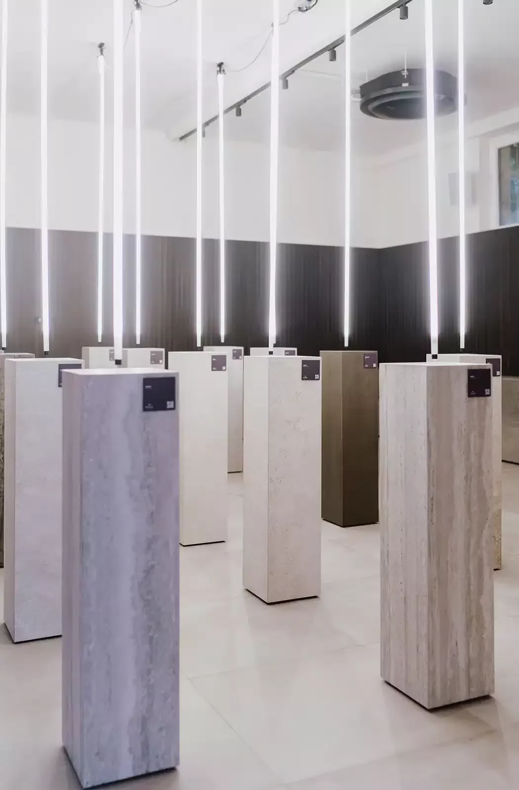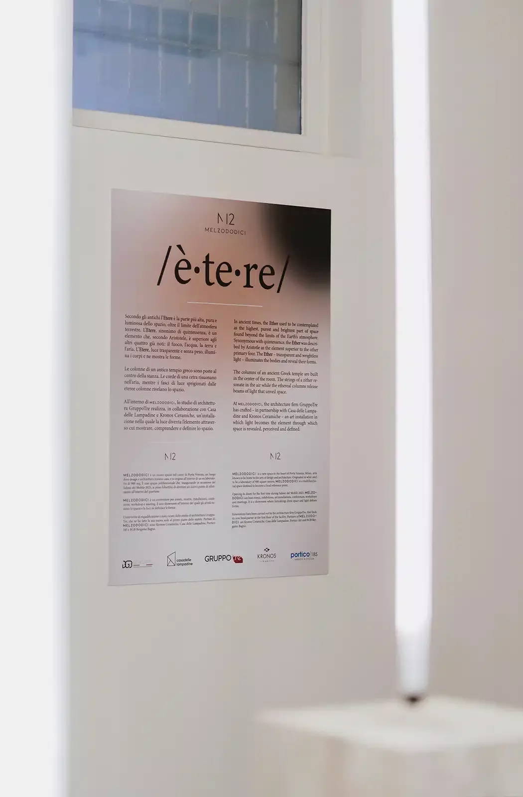 Per aprire la strada anche a questo tipo di utilizzo, durante il Fuori Salone 2023, Casa delle Lampadine ha realizzato con lo studio di architettura GruppoTre e Kronos Ceramiche, “Etereo” un’installazione nella quale la luce diventa l’elemento attraverso cui mostrare, comprendere e definire lo spazio, in un gioco geometrico di colonne in pietra e led quasi a disegnare un tempio greco.
