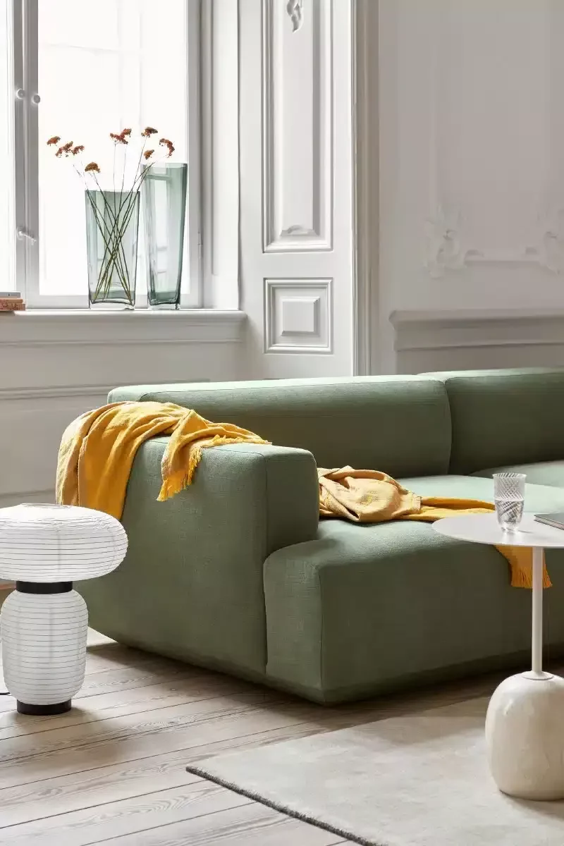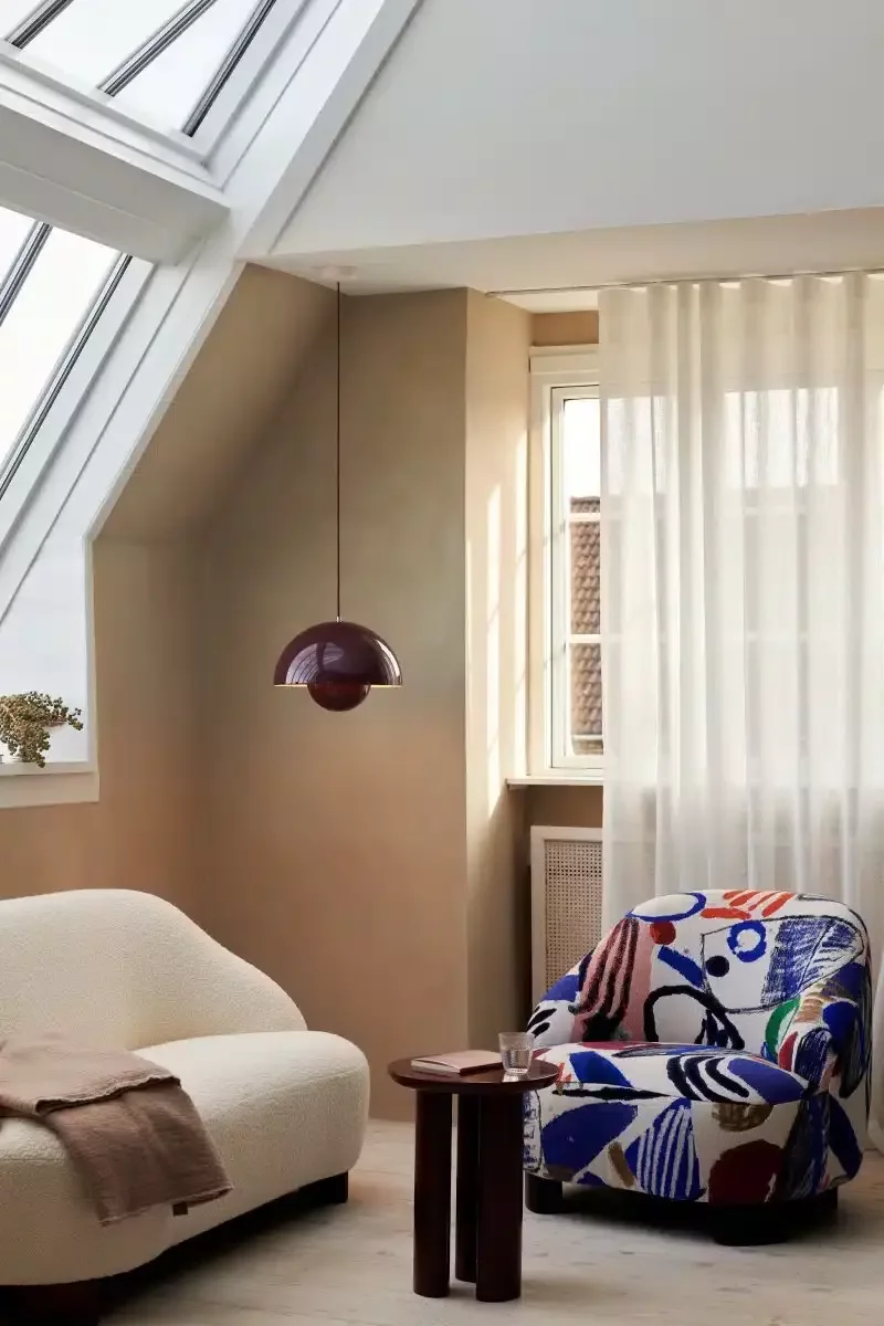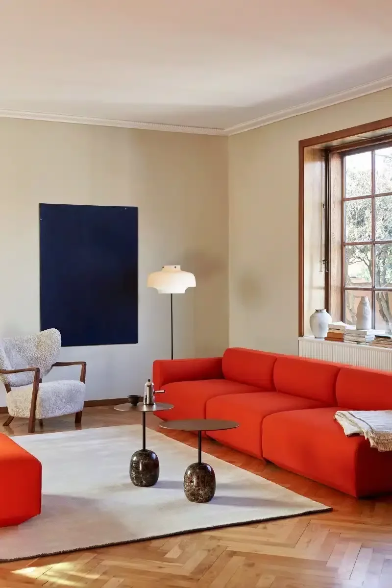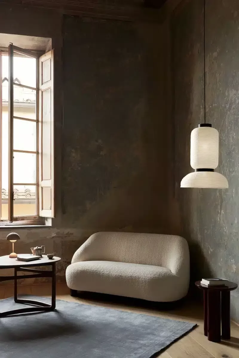 In questo caso, ad esempio, la sospensione Formakami di &Tradition disegnata da Jaime Hayon reinterpretando una tradizionale lanterna asiatica, porta un tocco di oriente in questo soggiorno dallo stile nordico.