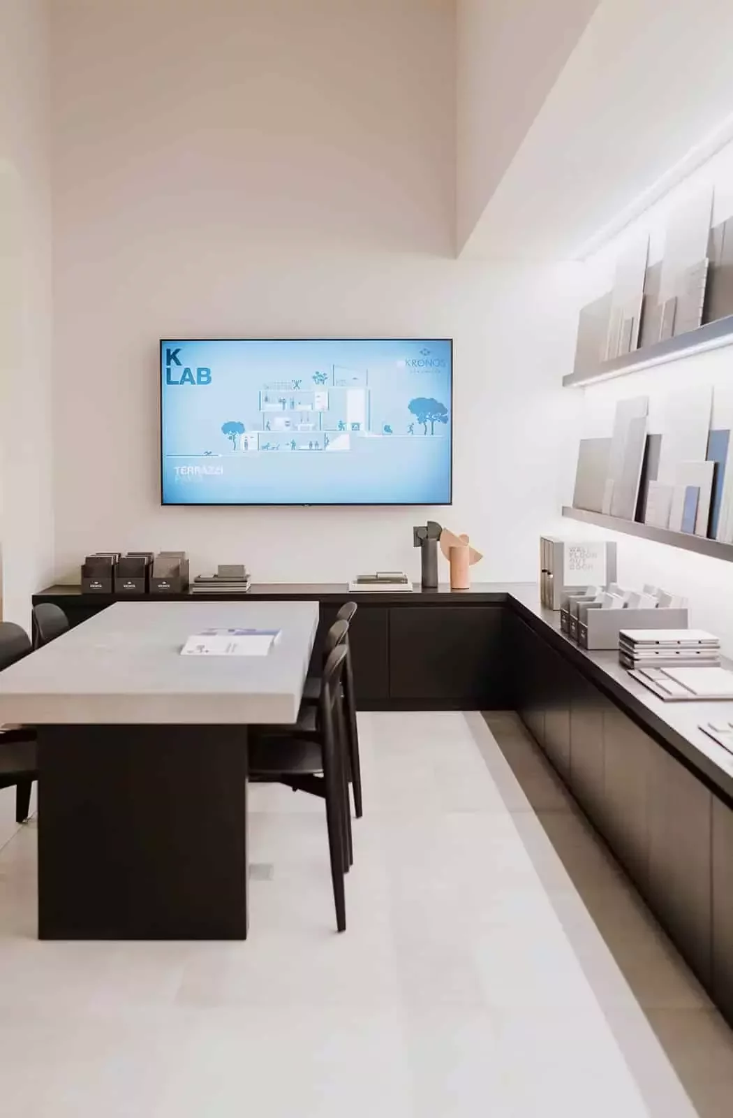 Oltre all’esposizione, lo spazio è pensato per accogliere privati e professionisti in un luogo fatto su misura per la consulenza e la progettazione.