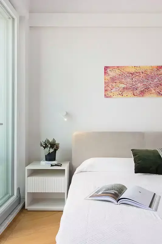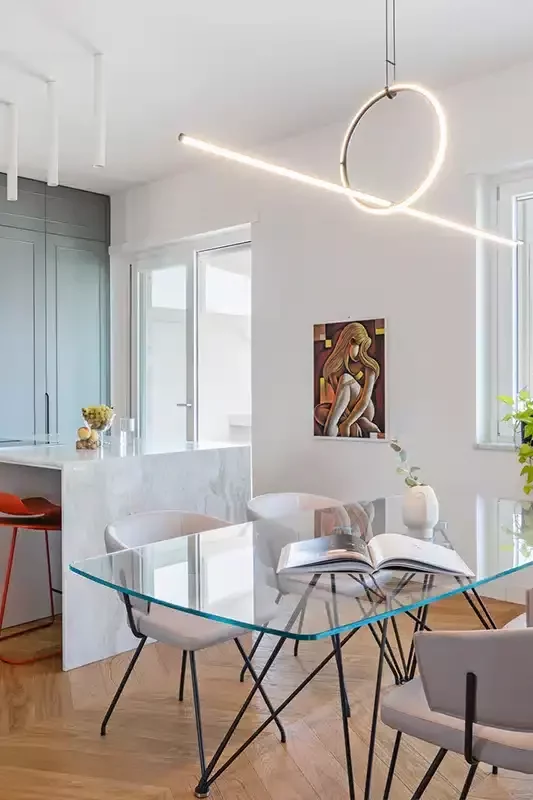 Un alloggio dall’atmosfera raffinata, dominata da colori tenui e delicati, in cui si inseriscono perfettamente elementi decorativi semplici ma originali che esaltano la bellezza degli elementi architettonici e rendono l’ambiente elegante e armonioso.