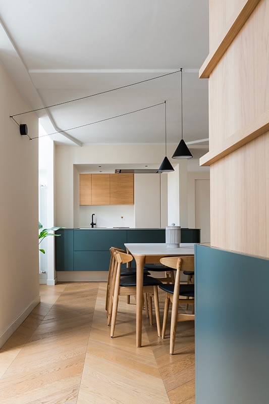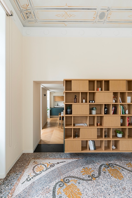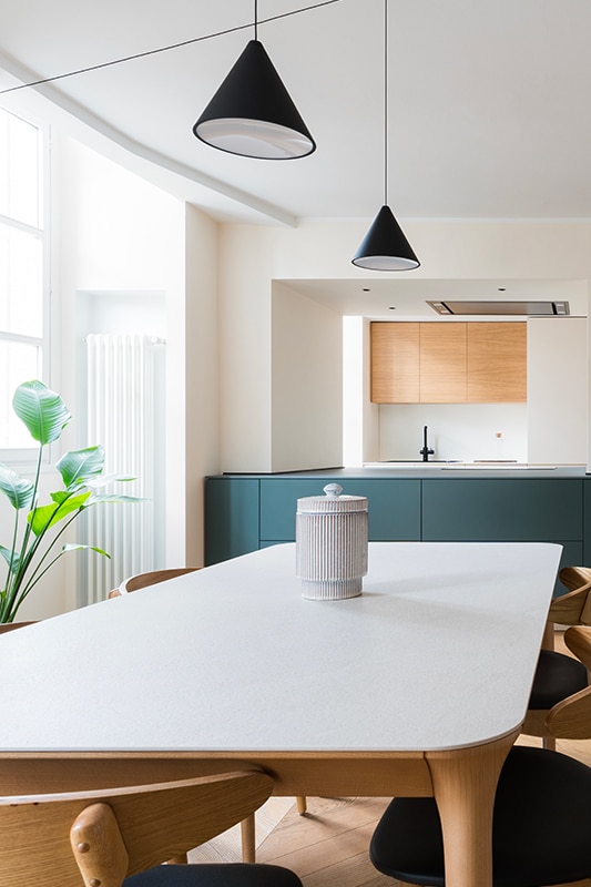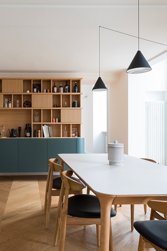 Arredi su misura, finiture e colori creano una sensazione rilassante e accogliente, esaltando il valore del palazzo storico in cui si trova questo meraviglioso appartamento ristrutturato da R3 Architetti. L’illuminazione gioca su elementi iconici dalle forme pulite per dare carattere e originalità valorizzando le forme leggere della casa.