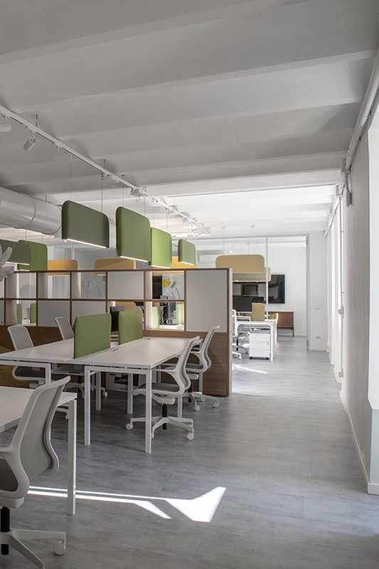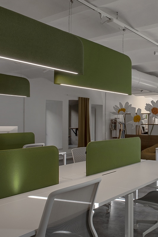 Dalì – Novalux, Kone – Novalux, BuzziShield Desk – BuzziSpace, The W – Marset, A-Tube – Lodes, BuzziShield Light – BuzziSpace, BuzziDesk – BuzziSpace, BuzziSkin – BuzziSpace, BuzziTube – BuzziSpace
