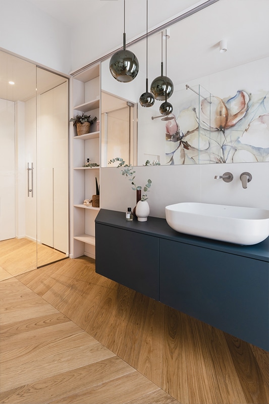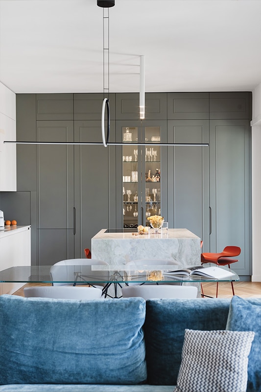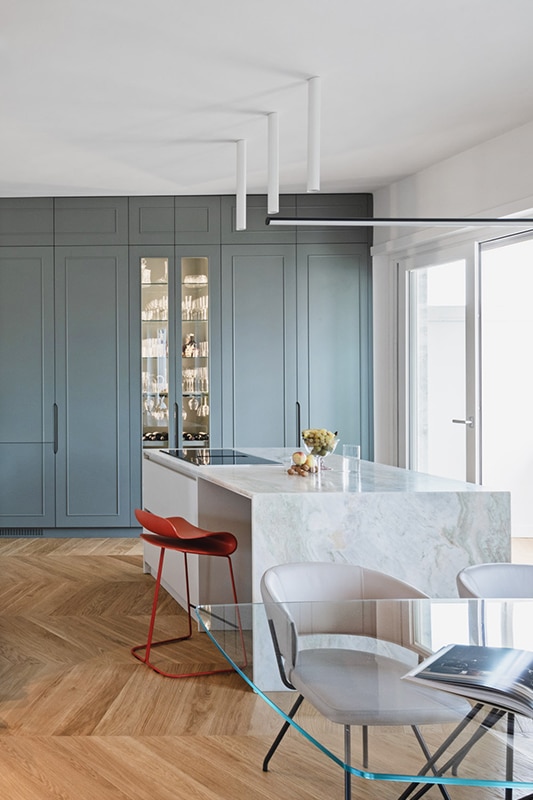 Un alloggio dall’atmosfera raffinata, dominata da colori tenui e delicati, in cui si inseriscono perfettamente elementi decorativi semplici ma originali che esaltano la bellezza degli elementi architettonici e rendono l’ambiente elegante e armonioso.