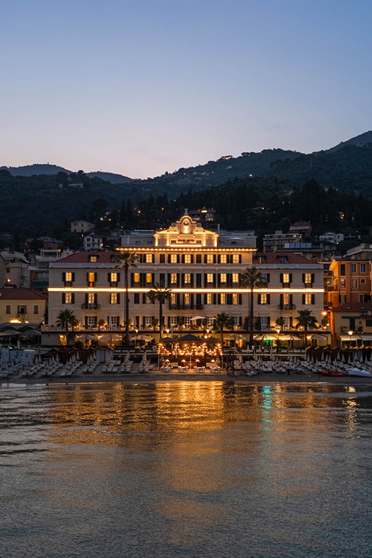Studiato per valorizzare la bellezza architettonica e l’eleganza dell’edificio, il progetto illuminotecnico per l’esterno del Grand Hotel di Alassio esalta la simmetria del palazzo creando un effetto di armonia visiva e di continuità con l’ambiente circostante.