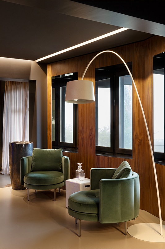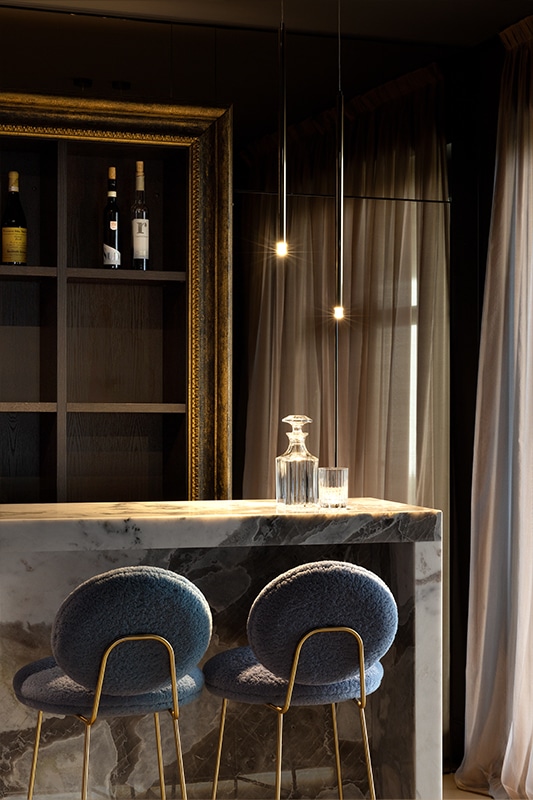 Per questa elegante villa, abbiamo pensato ad un’illuminazione che potesse valorizzare gli spazi interni ed esterni attraverso una combinazione di luce funzionale e decorativa. Per gli interni, le lampade scelte esaltano la raffinatezza dei materiali, in armonia con l’arredo contemporaneo. Per gli esterni, invece, le soluzioni luminose si integrano perfettamente con l’architettura moderna dell’edificio, evidenziando volumi e texture.