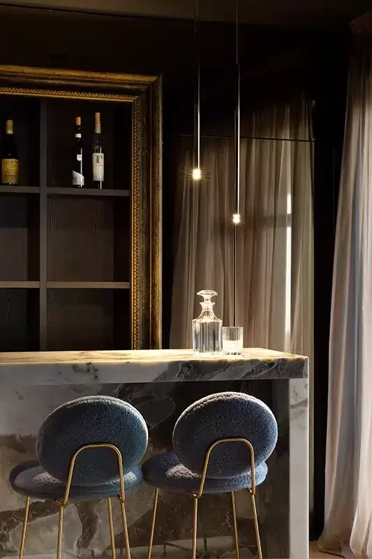 Per questa elegante villa, abbiamo pensato ad un’illuminazione che potesse valorizzare gli spazi interni ed esterni attraverso una combinazione di luce funzionale e decorativa.