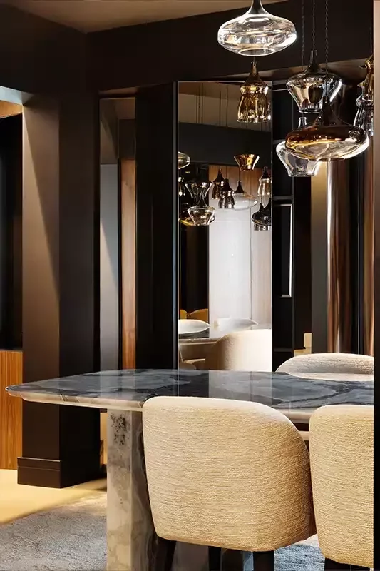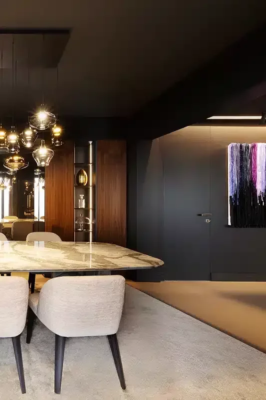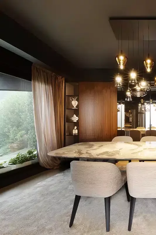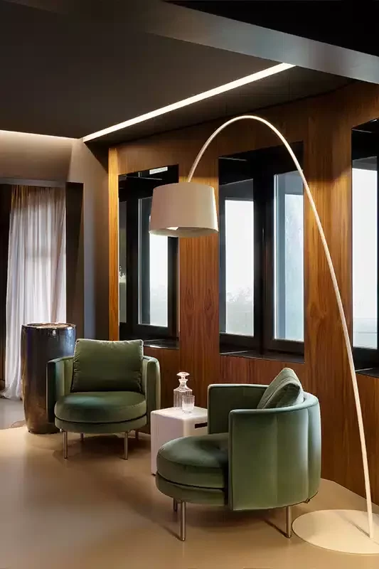 Per gli interni, le lampade scelte esaltano la raffinatezza dei materiali, in armonia con l’arredo contemporaneo. Per gli esterni, invece, le soluzioni luminose si integrano perfettamente con l’architettura moderna dell’edificio, evidenziando volumi e texture.